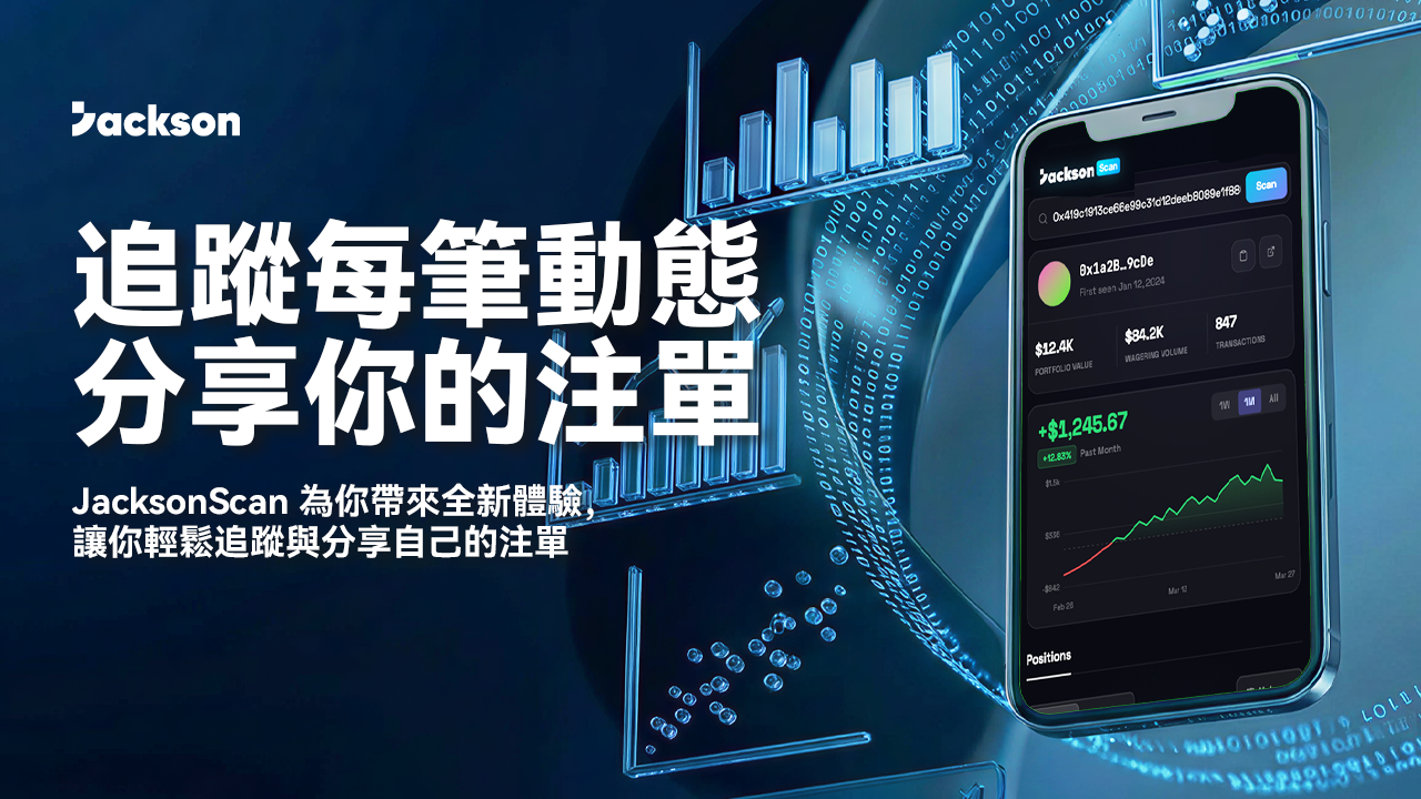 Jackson.io 隆重宣布全新鏈上查詢產品 JacksonScan 正式上線!為持續提升平台透明度與用戶信任機制,我們已於 JacksonScan.com 推出這項全新服務,為您提供更即時且可驗證的體育賽事訂單查詢體驗。作為生態系中的重要基礎工具,JacksonScan 透過區塊鏈的技術優勢,將原本分散的資訊完美整合,讓您能以最直觀的方式掌握自身的參與紀錄。